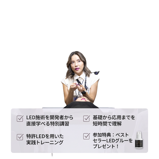 「LEDを使ったまつげは新しい常識となり、私はフロアランプやクリップなど、さまざまなデバイスを試しました。しかし、クライアントや友人は光や熱に不安を感じていました。そこで、私たちは最も安全なソリューションであるLash Plus - LED Tweezerを開発しました。」