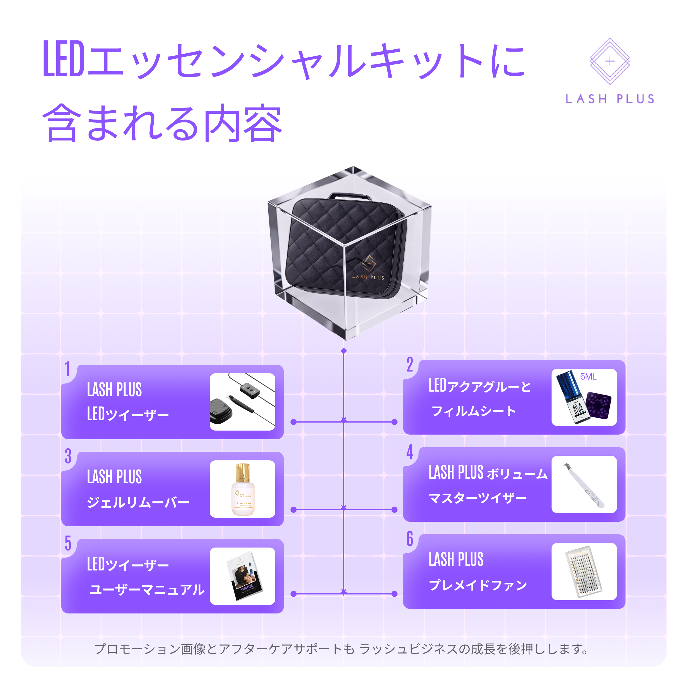 瞬時かつ安全に接着するよう設計されており、ラッシュの持ちを高めると同時に、お客様の快適さもサポートします。