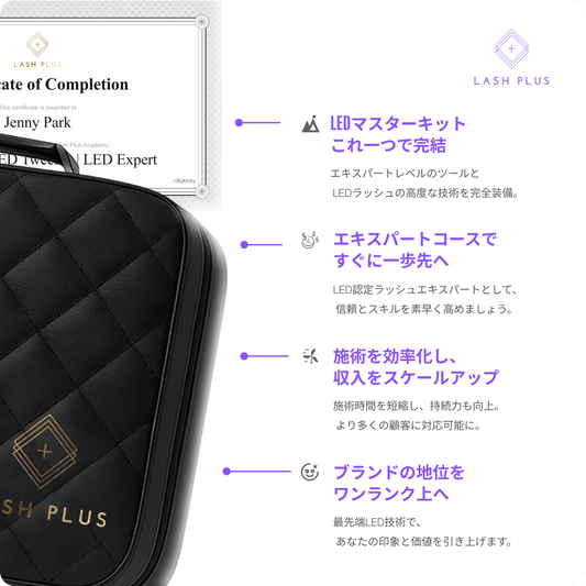 まつげエクステの古い悩みにさようならし、Lash Plus - LED Tweezer システムで未来を迎えましょう。このオールインワンキットと専門的なトレーニングおよび認証を組み合わせることで、より速く、より快適なまつげアプリケーション体験を提供するために必要なすべてが揃っています。